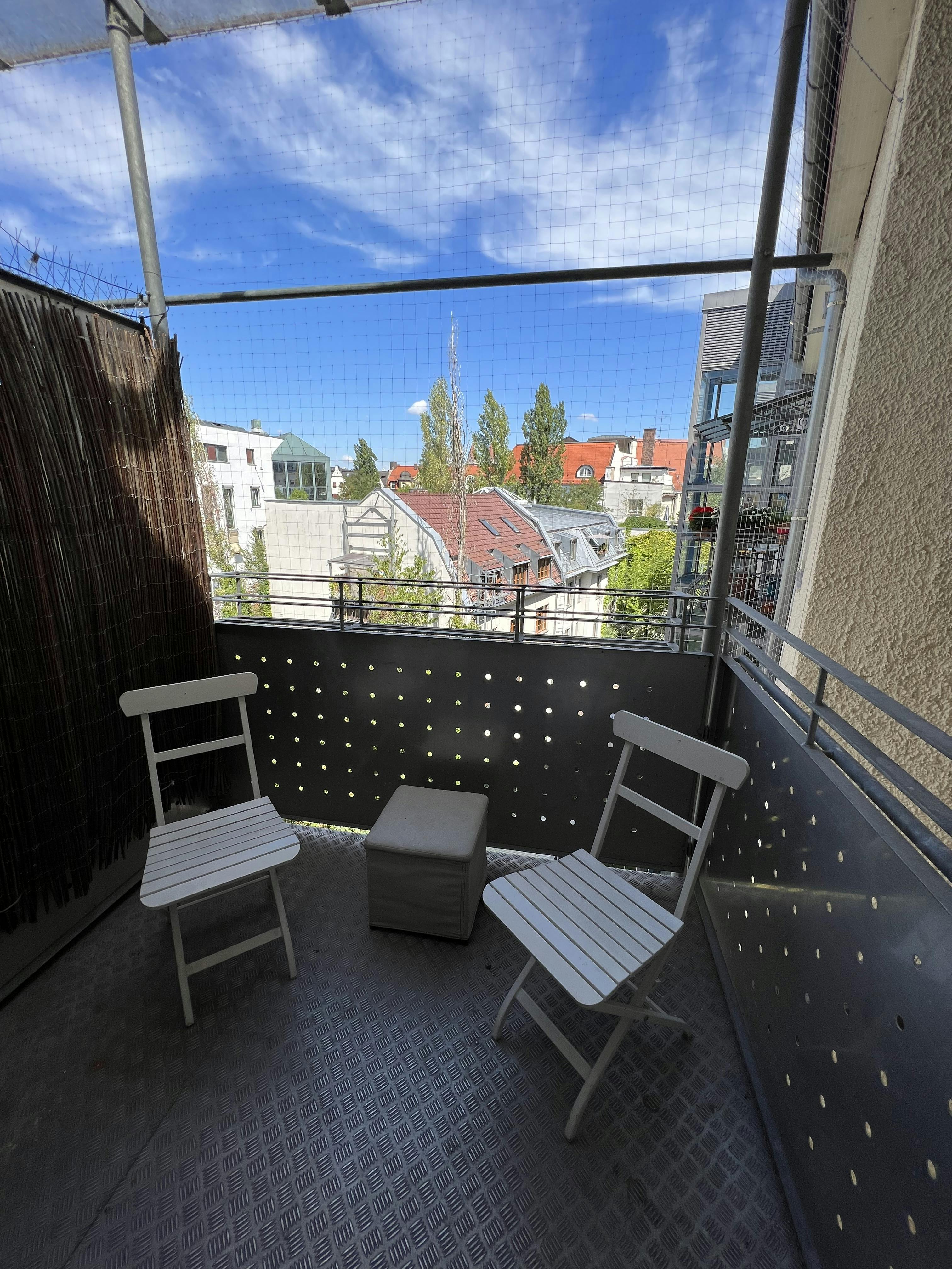 21 sqm furnished room in 105 sqm apartment at Stiglmeier Square We a looking for one person for our shared 105sqm flat in a beautiful old building in the heart of Munich. The 21sqm south-facing room is equipped with a 2m*2m box spring double bed with bedside table, a desk with office chair and lamp, and a 220cm*75cm PAX wardrobe. The beautiful old building apartment is furnished, has four light-flooded south-facing rooms with wooden floors and 3m high ceilings and a view of the iconic Circus Krone and the Spaten Brewery, a balcony with a view over the roofs of Munich, a...