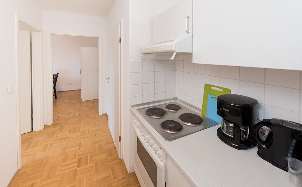 ROOM Our flats fulfil all your daily living requirements. Every flat comes readily equipped with a kitchen, including refrigerator, cooking equipment and dishes. Flats also include a washing machine and Wi-Fi Internet. Each room is fully furnished and offers a comfortable bed with fresh linen and a workspace. The area provides you with several shopping opportunities and excellent connections to public transport.