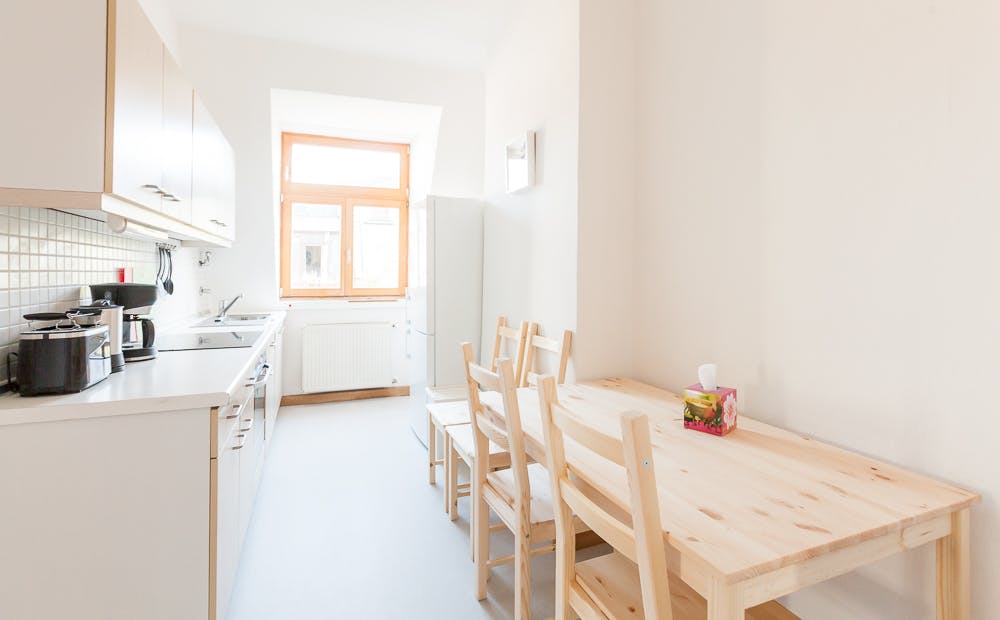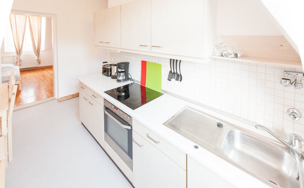 ROOM Our flats fulfil all your daily living requirements. Every flat comes readily equipped with a kitchen, including refrigerator, cooking equipment and dishes. Flats also include a washing machine and Wi-Fi Internet. Each room is fully furnished and offers a comfortable bed with fresh linen and a workspace. The area provides you with several shopping opportunities and excellent connections to public transport.