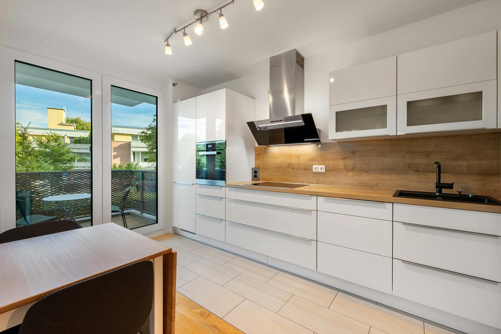 The bright flat comprises 4 bedrooms, 1 bathroom, 1 guest WC, a kitchen, a balcony and the possibility to rent a parking space. Each room is newly furnished and includes a bed, desk, mirror and shelves. In the kitchen there is a dishwasher and the first basic equipment. There is also a washing machine in the flat, as well as some cleaning utensils. The flat is in a central and quiet location in Pasing. You can reach the centre of Pasing with all shopping facilities, such as the Pasing Arcaden, in approx. 12 minutes by foot. The Pasing railway station (S-Bahn,...