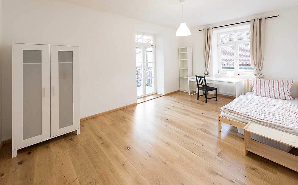 ROOM Our flats fulfil all your daily living requirements. Every flat comes readily equipped with a kitchen, including refrigerator, cooking equipment and dishes. Flats also include a washing machine and Wi-Fi Internet. Each room is fully furnished and offers a comfortable bed with fresh linen and a workspace. The area provides you with several shopping opportunities and excellent connections to public transport.