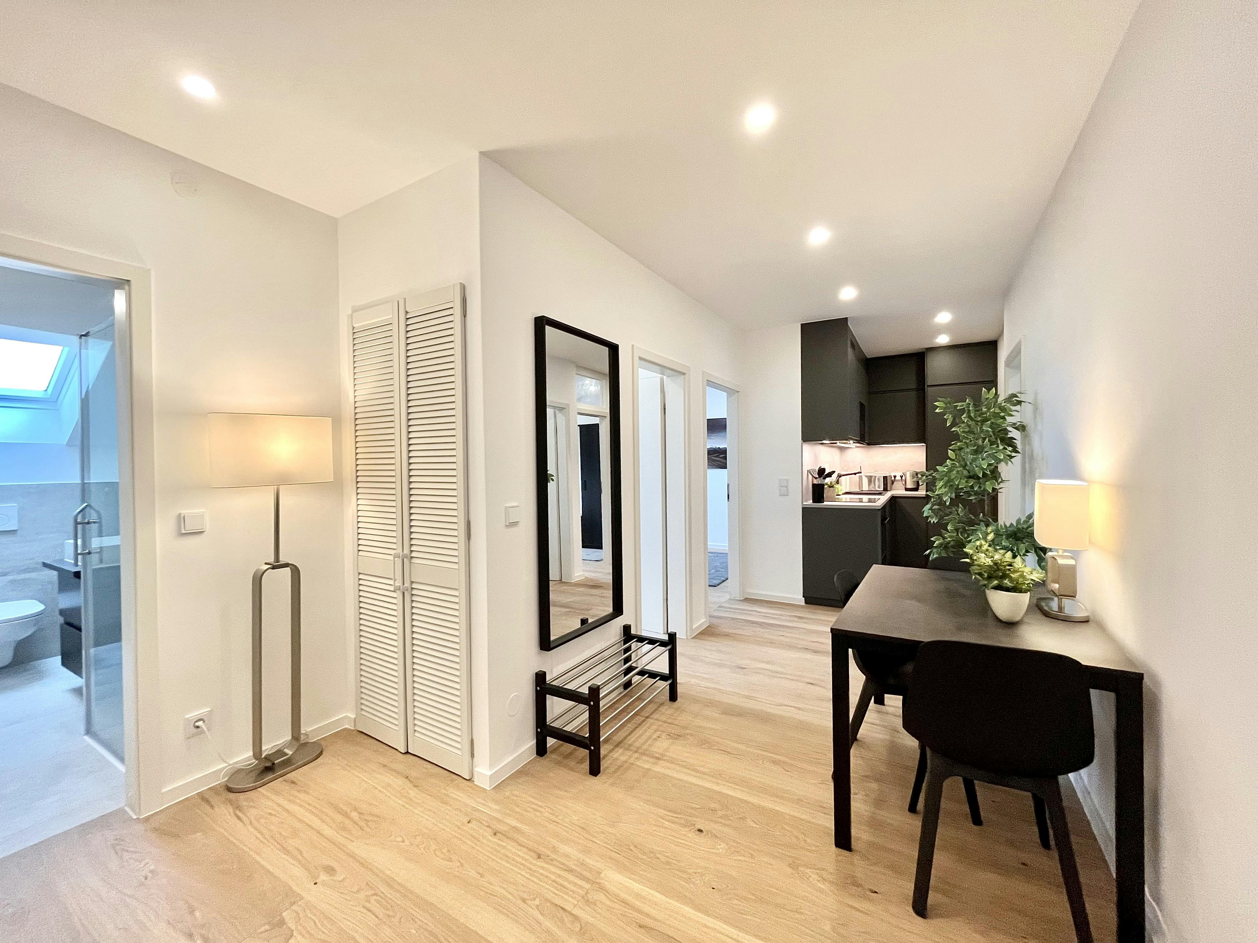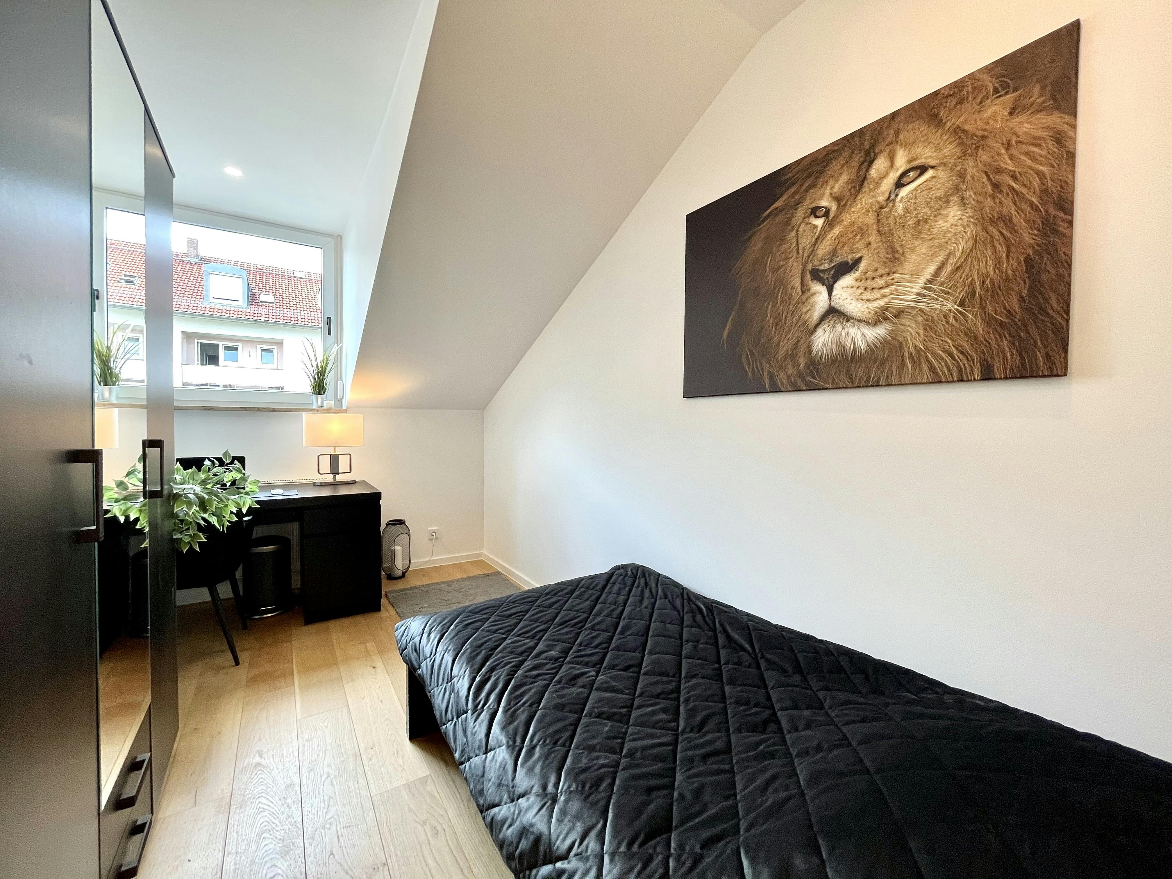 You can go on a virtual tour through the whole apartment: https://my.matterport.com/show/?m=HxCAgPWu7QV The newly and high-quality equipped room is part of a 93 sqm renovated apartment in Munich, Laim, operated by 089apartments. The comfortably furnished room has the following new furniture: - bed with adjustable slats and medium-firm foam mattress with mattress protector - Large wardrobe - Desk with drawers and upholstered chair - Short pile carpet - Decorative wall pictures The table and floor lamps, plants, and office supplies shown in the pictures are for illustration purposes only and are not included with the rental. The generous hallway gives a very inviting impression and provides access to all rooms...