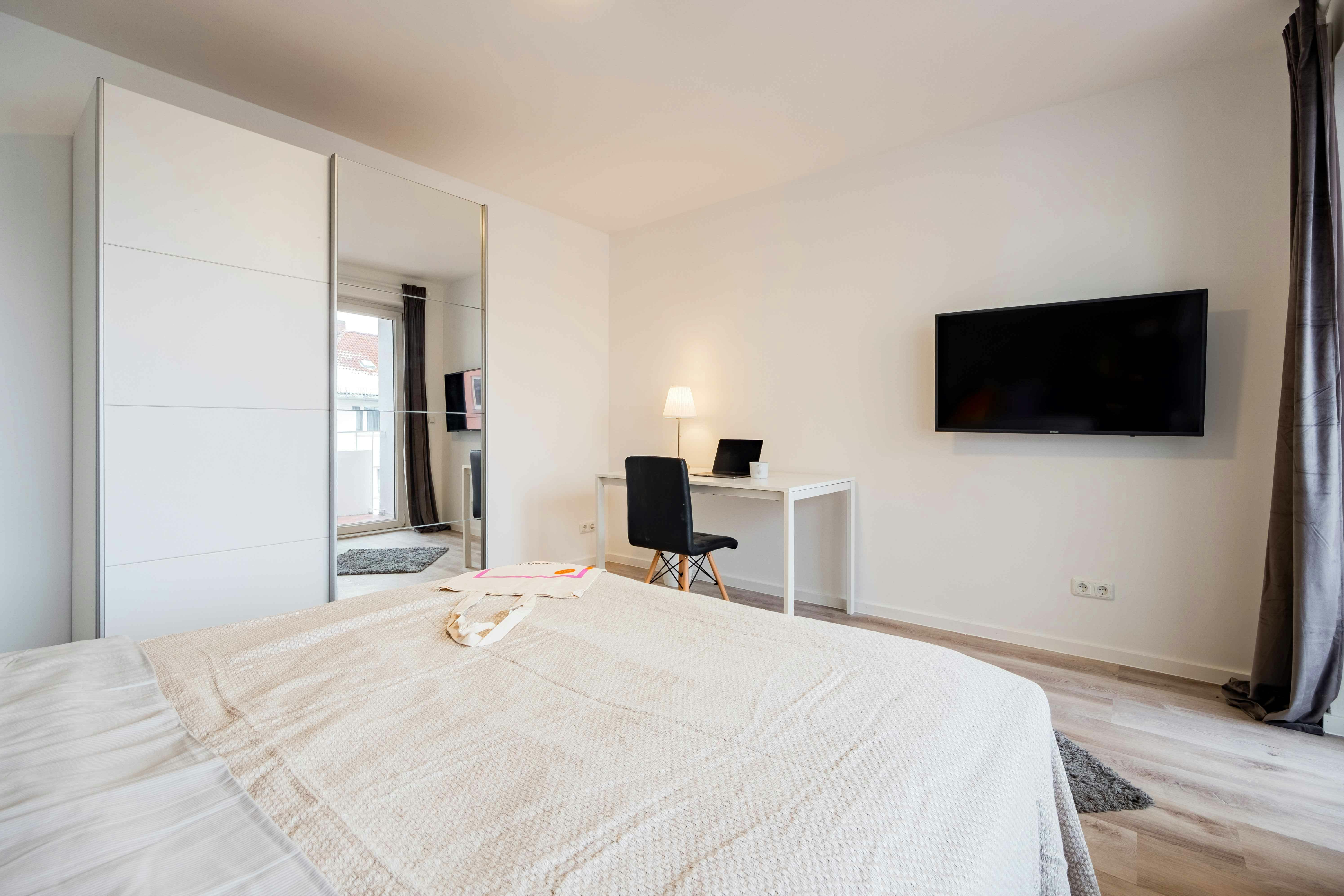 ROOM Bright and colorful, this private bedroom in Munich has everything you need for a comfortable daily life. Your private space includes a comfy bed, a desk to work or study from home, and a spacious wardrobe. APARTMENT This apartment is the perfect space to enjoy your everyday Munich life in comfort and style. The apartment features a spacious and modern shared kitchen, fully equipped with everything you need. Youll also have access to a dedicated dining area and shared bathrooms.This apartment is the perfect space to enjoy your everyday Munich life in comfort and style. The apartment features a spacious and modern...