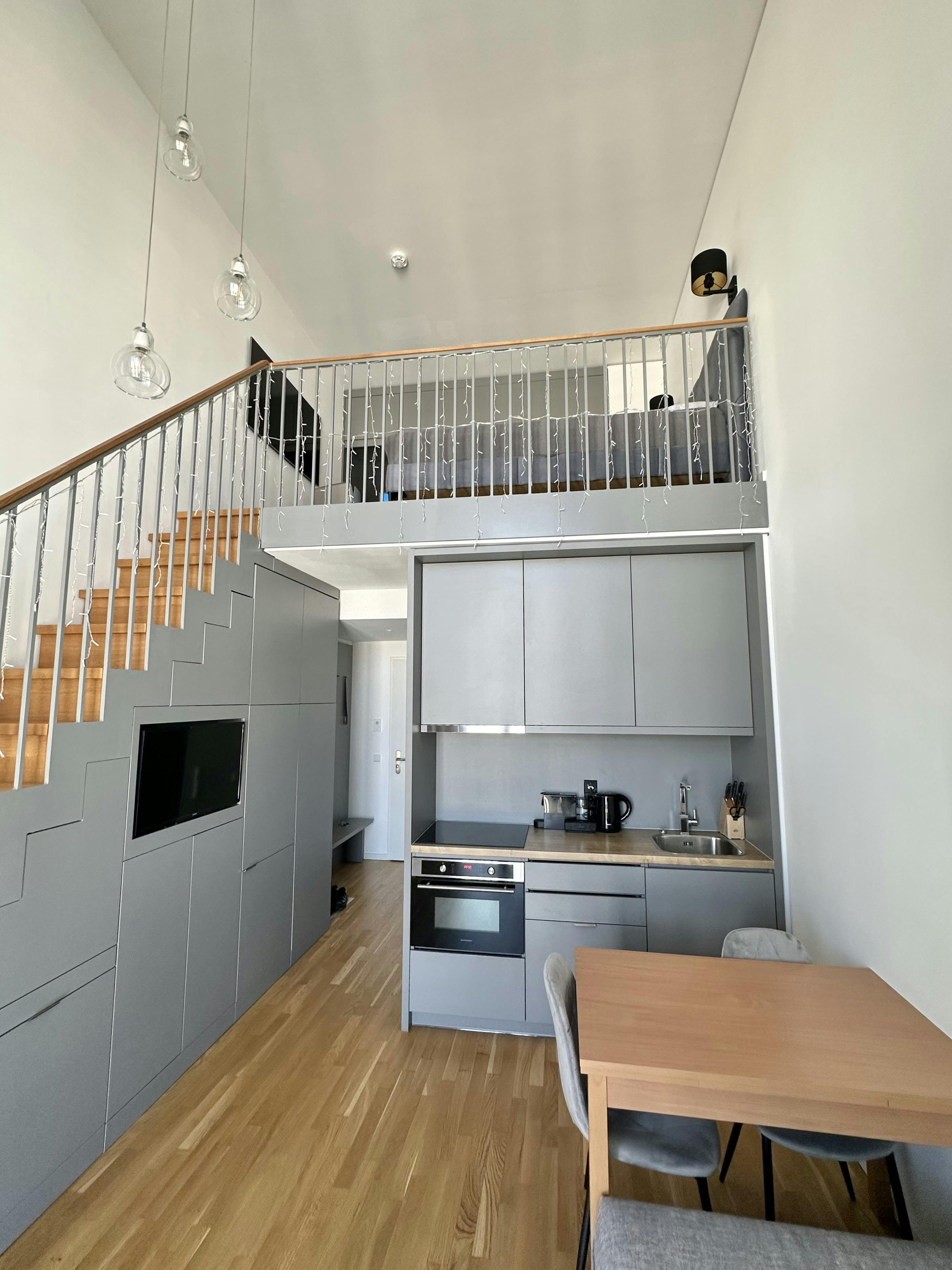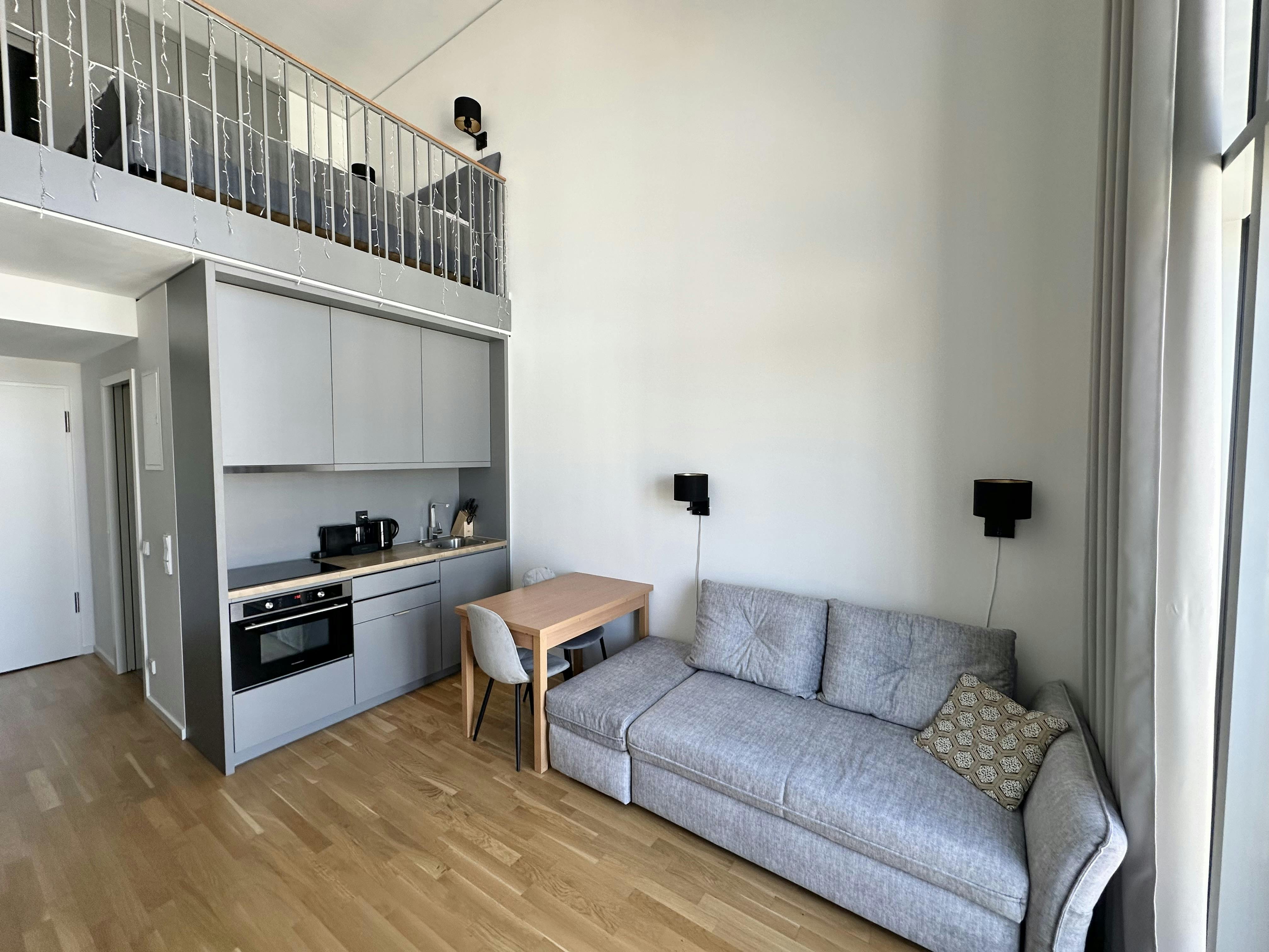Exclusive Gallery Apartment with Fitness Area & Rooftop Terrace – Ideal for Expats Right next to Oberwiesenfeld U-Bahn Station (U3) Rent (all-in, Warmmiete): €1,800 / month Includes: all utilities, heating, electricity, water, internet, furniture, building services & access to fitness area. Move in without the hassle – no need to register with utility providers like SWM, no paperwork, no stress. This stylishly furnished gallery apartment offers premium comfort in a modern building with a fitness area, lounge, and a spacious rooftop terrace featuring breathtaking panoramic views of the Alps. Highlights: • Two-level maisonette layout with high ceilings and lots of natural light • Extra-wide box spring bed (180x220 cm) with...