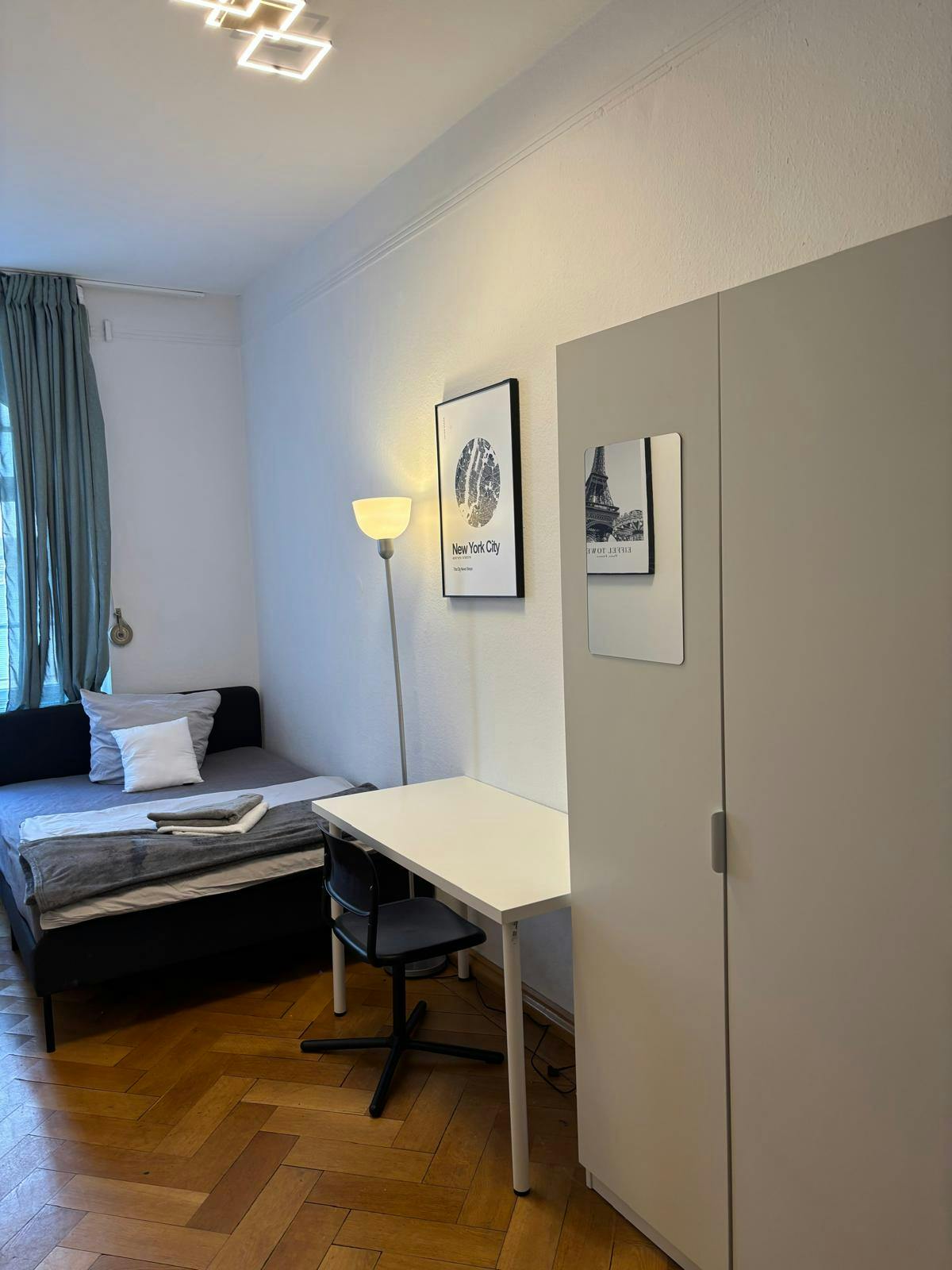 Fully Furnished Rooms in Central Munich – All-Inclusive! Our bright and stylish apartments are perfectly located in the heart of Munich, just a few minute walk from public transport. Shops, restaurants, and everything you need are within walking distance. Each room approx. 10m2 comes fully furnished with a bed, wardrobe, desk, and chair – just bring your suitcase and settle in! The shared spaces include a fully equipped kitchen with refrigerator, cookware, dishwasher, washing machine, and dryer, and one or two spacious bathrooms. Utilities (gas, water, electricity, heating) included. No extra charges except GEZ (media tax) Common Areas Residents have access to a clean and...