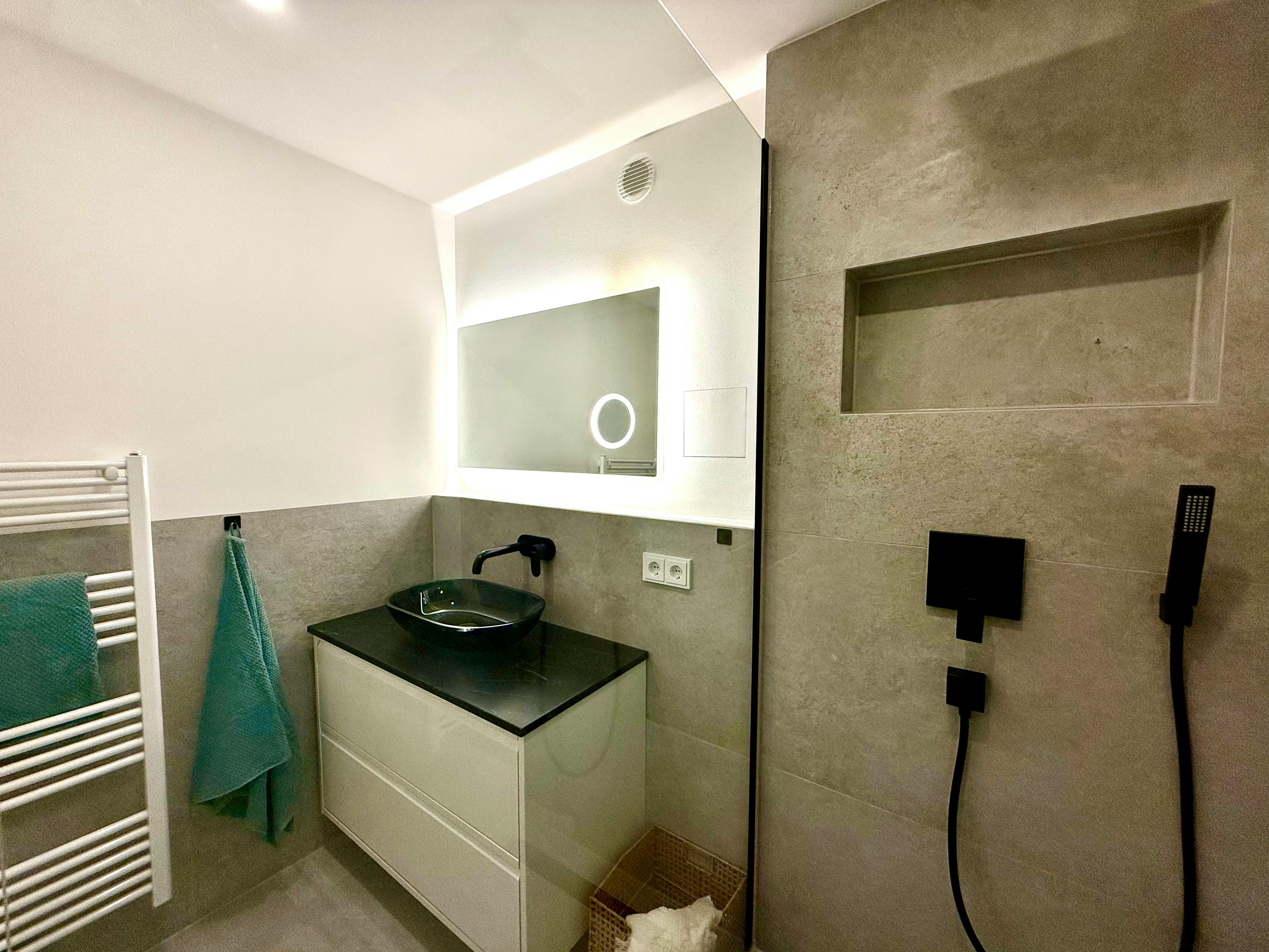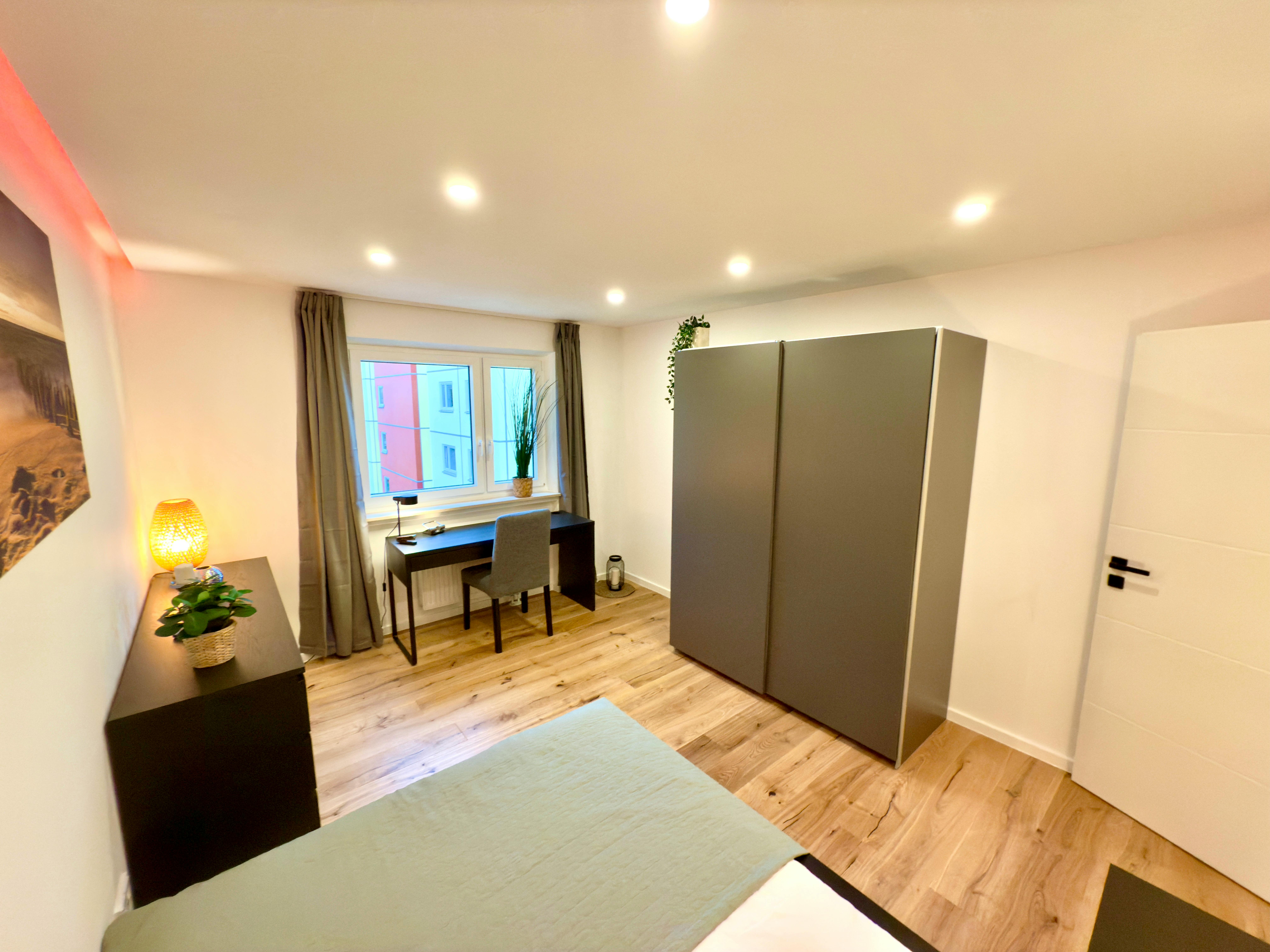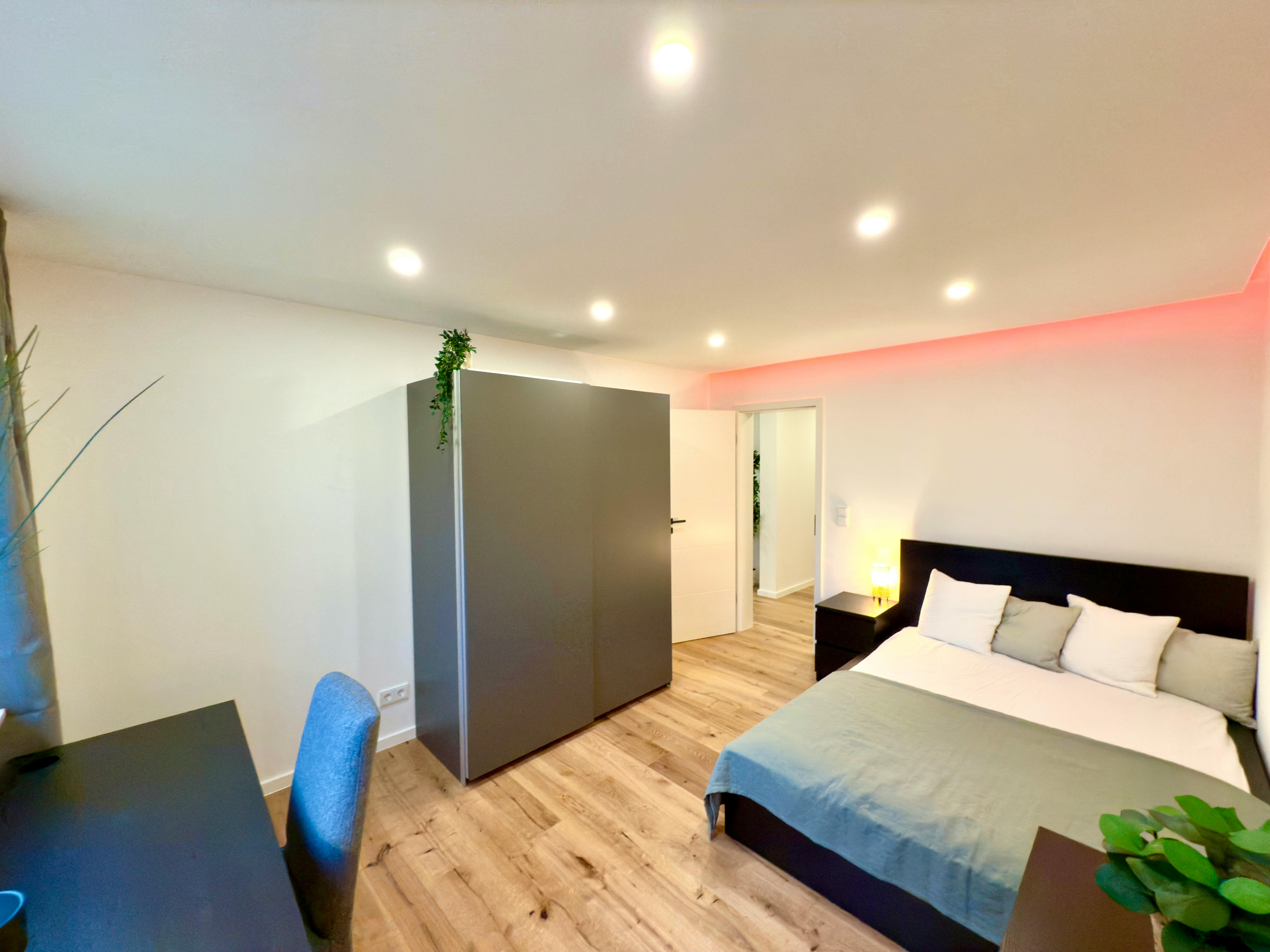 The newly and high-quality equipped room is part of an 81 sqm newly renovated apartment in Munich, Perlach. The generous hallway gives a very inviting impression and provides access to all rooms of the large apartment. The apartment also has a newly furnished bathroom, with a washbasin and LED mirror, a towel radiator and a shower as well as a toilet. Get a closer look, how the apartment will look like: https://my.matterport.com/show/?m=QrxZM717HmV The comfortably furnished room has the following brand new furniture: - bed - Large wardrobe - Desk with drawers and upholstered chair - Chest of drawers - Decorative wall picture The table and floor lamps, plants,...