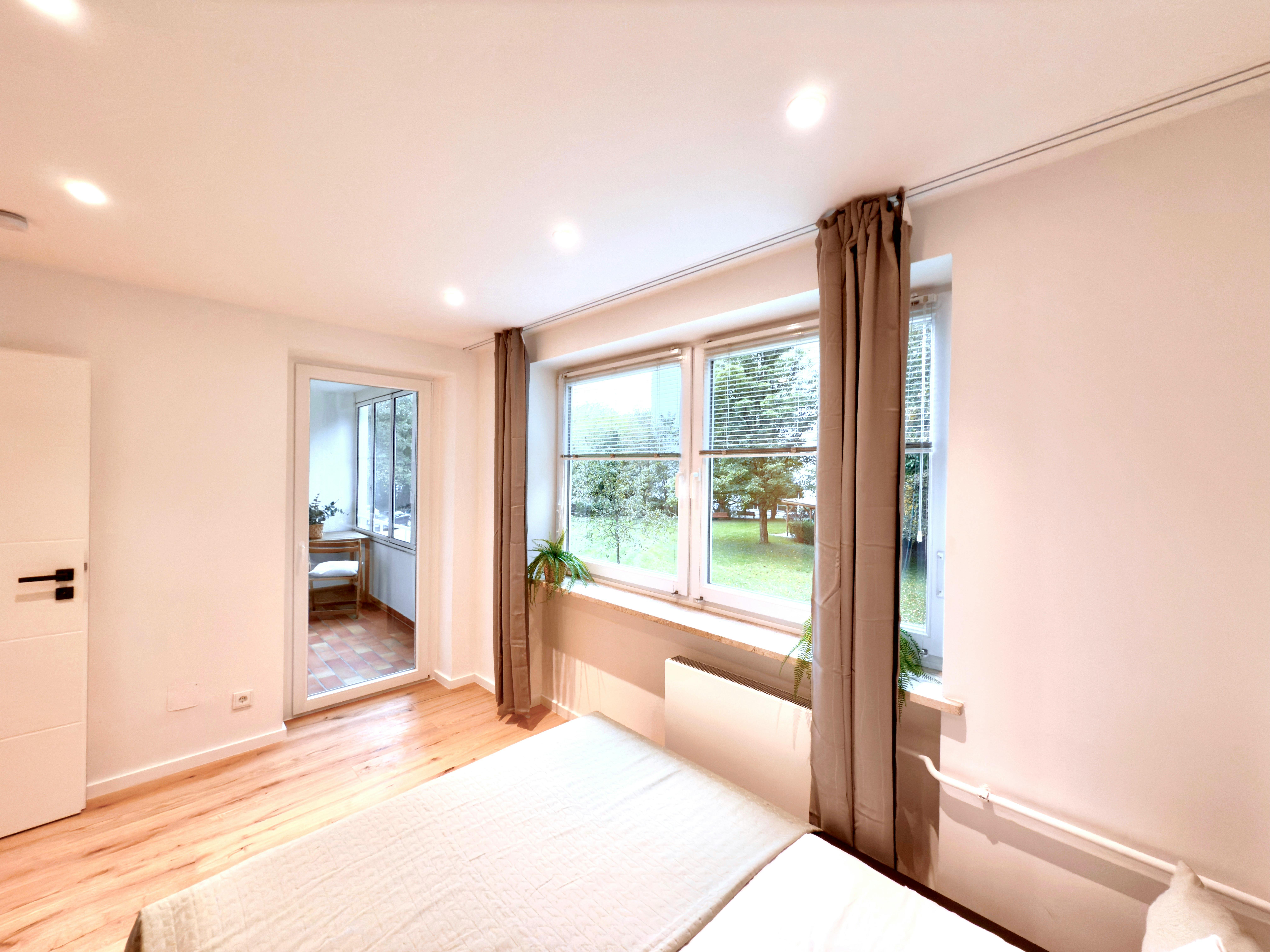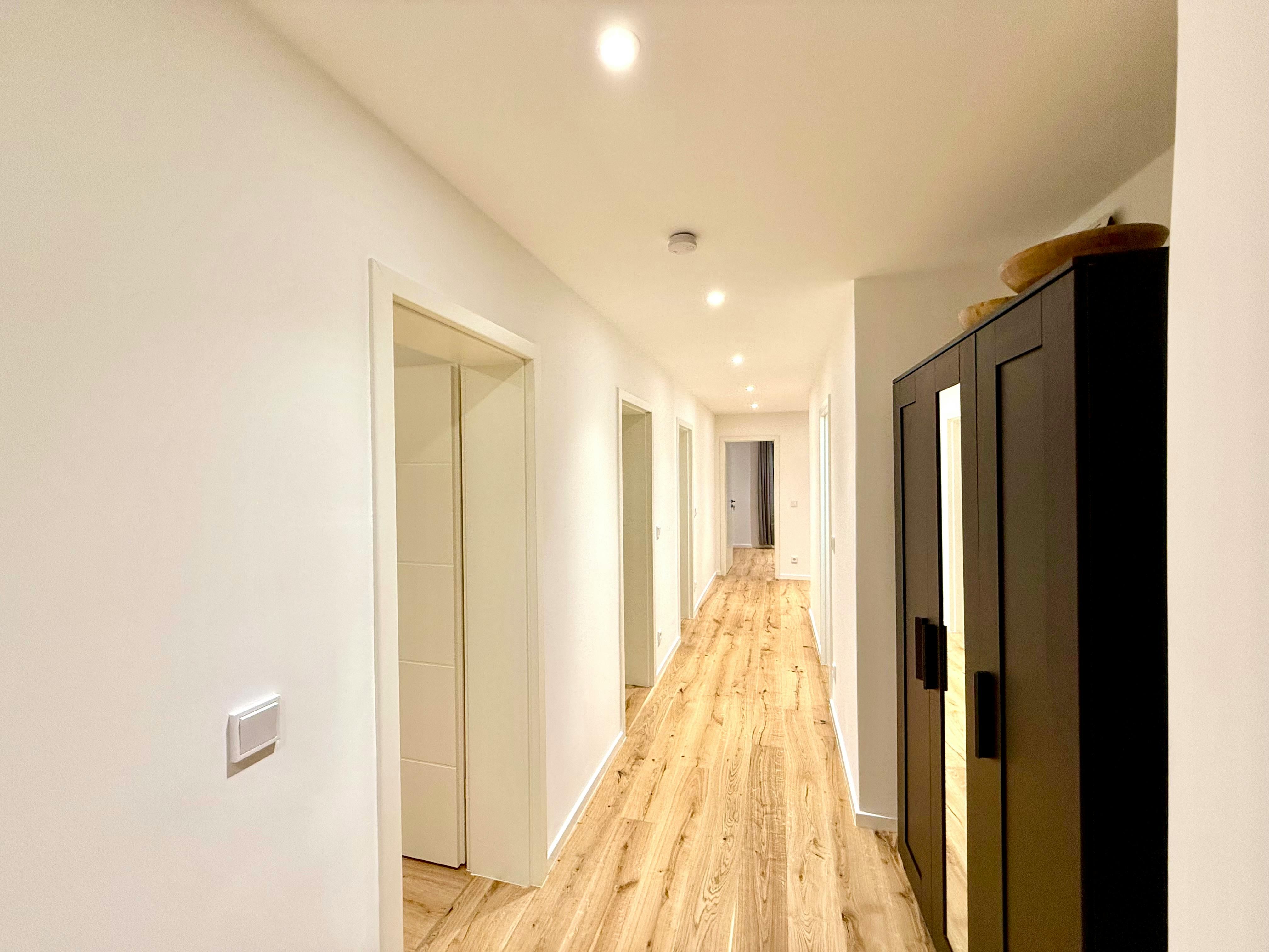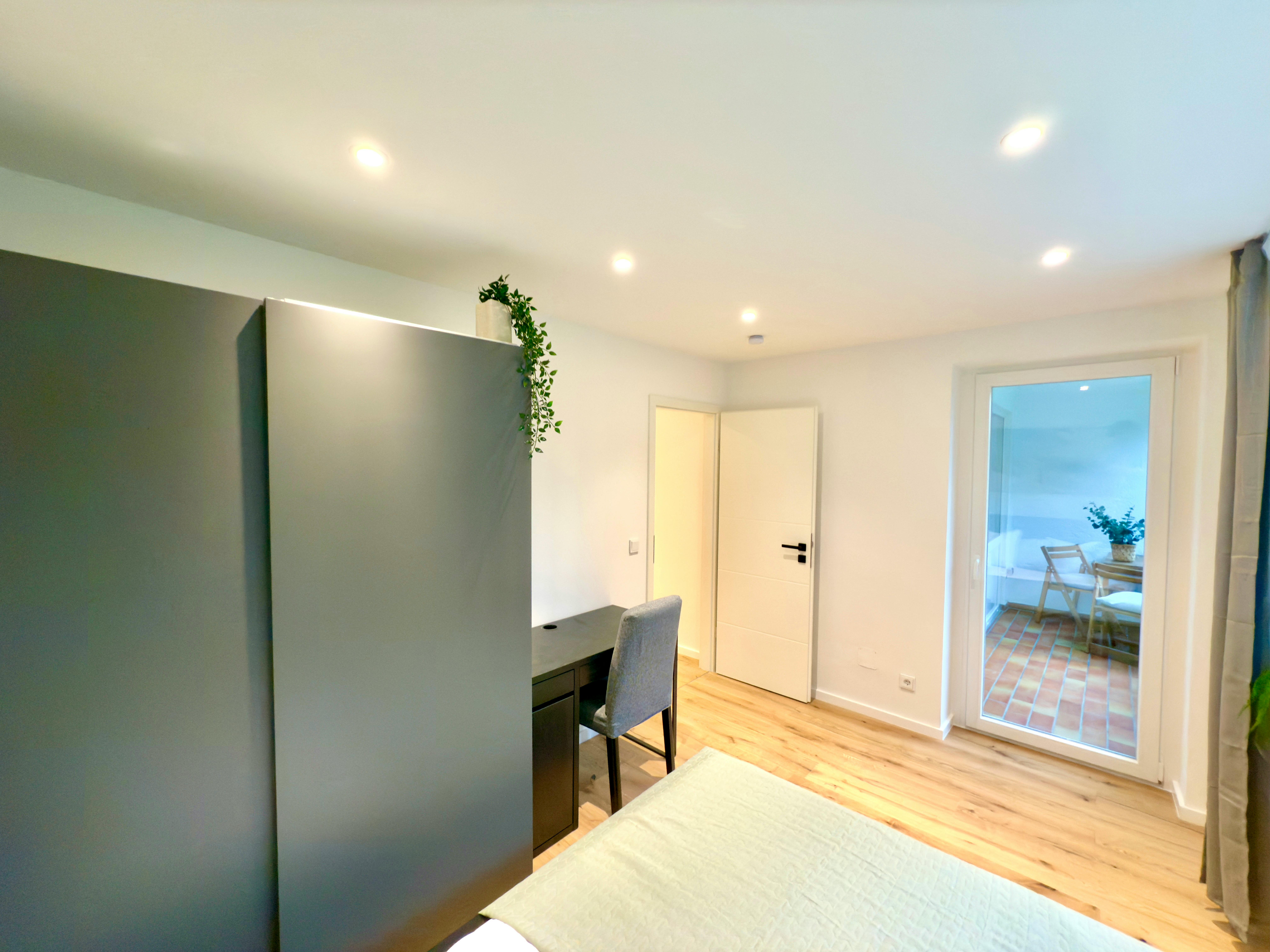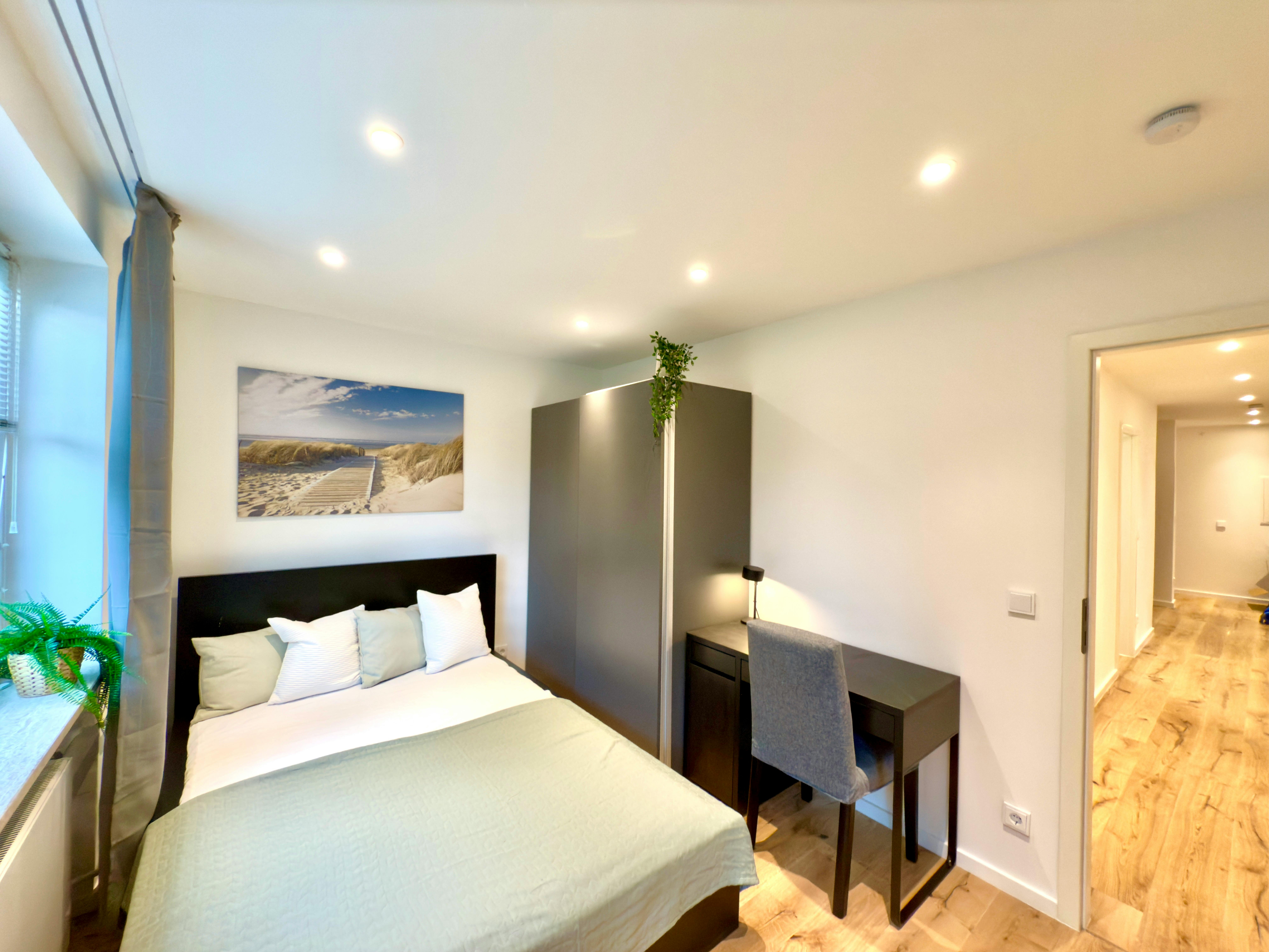 The newly and high-quality equipped room (Room 4) is part of an 81 sqm newly renovated apartment in Munich, Perlach. The generous hallway gives a very inviting impression and provides access to all rooms of the large apartment. The apartment also has a newly furnished bathroom, with a washbasin and LED mirror, a towel radiator and a shower as well as a toilet. The comfortably furnished room has the following brand-new furniture: - 140 cm bed with a mattress protector - Large wardrobe - Desk with drawers and upholstered chair - Decorative wall picture - Access to shared balcony We invite you to have a deeper...