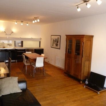 ✔️ Fully furnished 65 m2 2-room apartment in Munich – Am Glockenbach ✔️ Spacious living area with open kitchen and large balcony ✔️ Exclusive furnishings with solid oiled oak parquet and selected antiques ✔️ Quiet, park-like location with beautiful backyard views ✔️ Prime location: vibrant Glockenbach neighborhood, close to cafés, pubs, and Munich city center ?️ The Apartment This 65 m2 apartment on the 3rd floor offers a spacious and thoughtfully designed living space. The open kitchen is integrated into the living area, creating a bright and inviting atmosphere. A large balcony provides peaceful views over the park-like backyard with mature trees, adding to the tranquility...