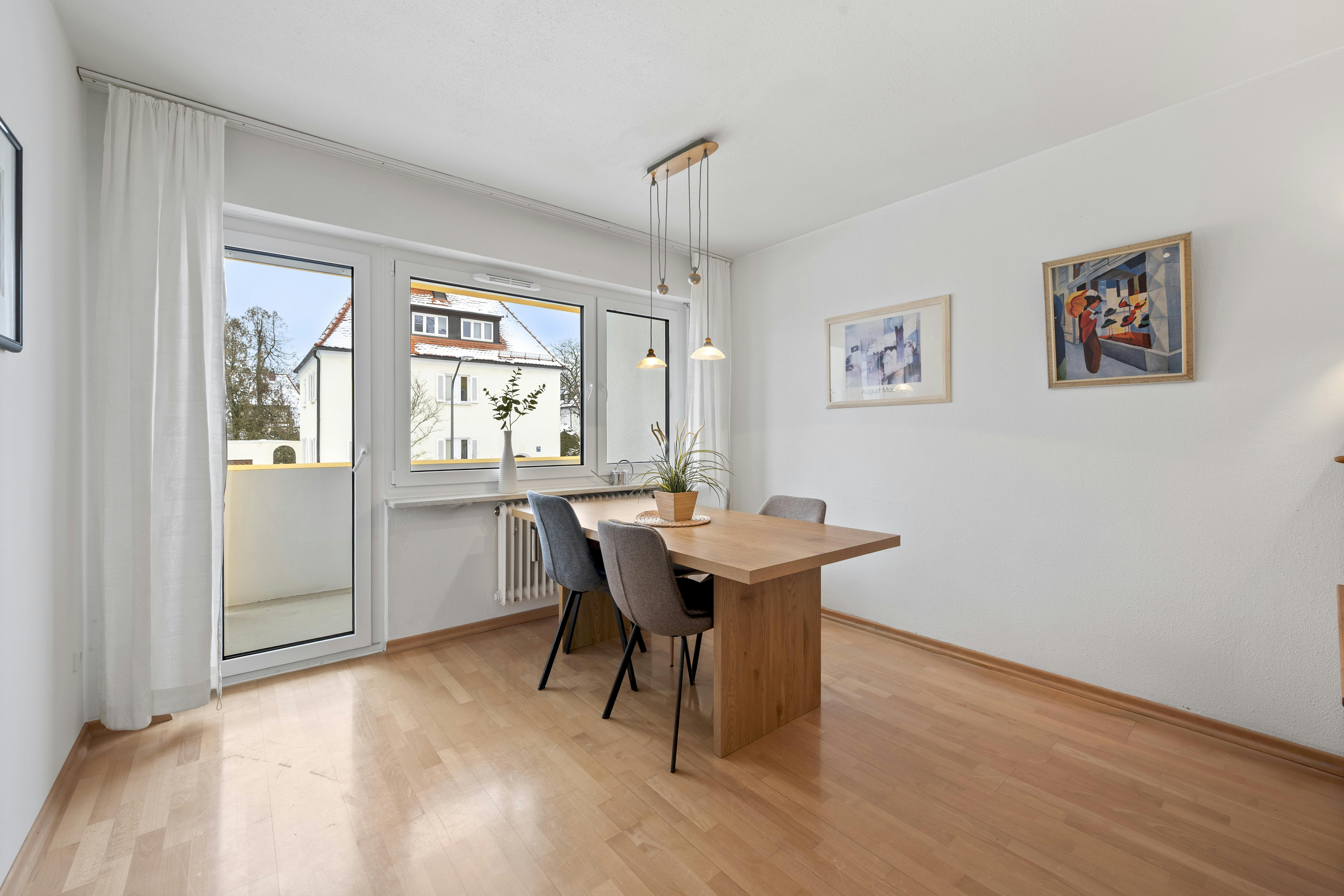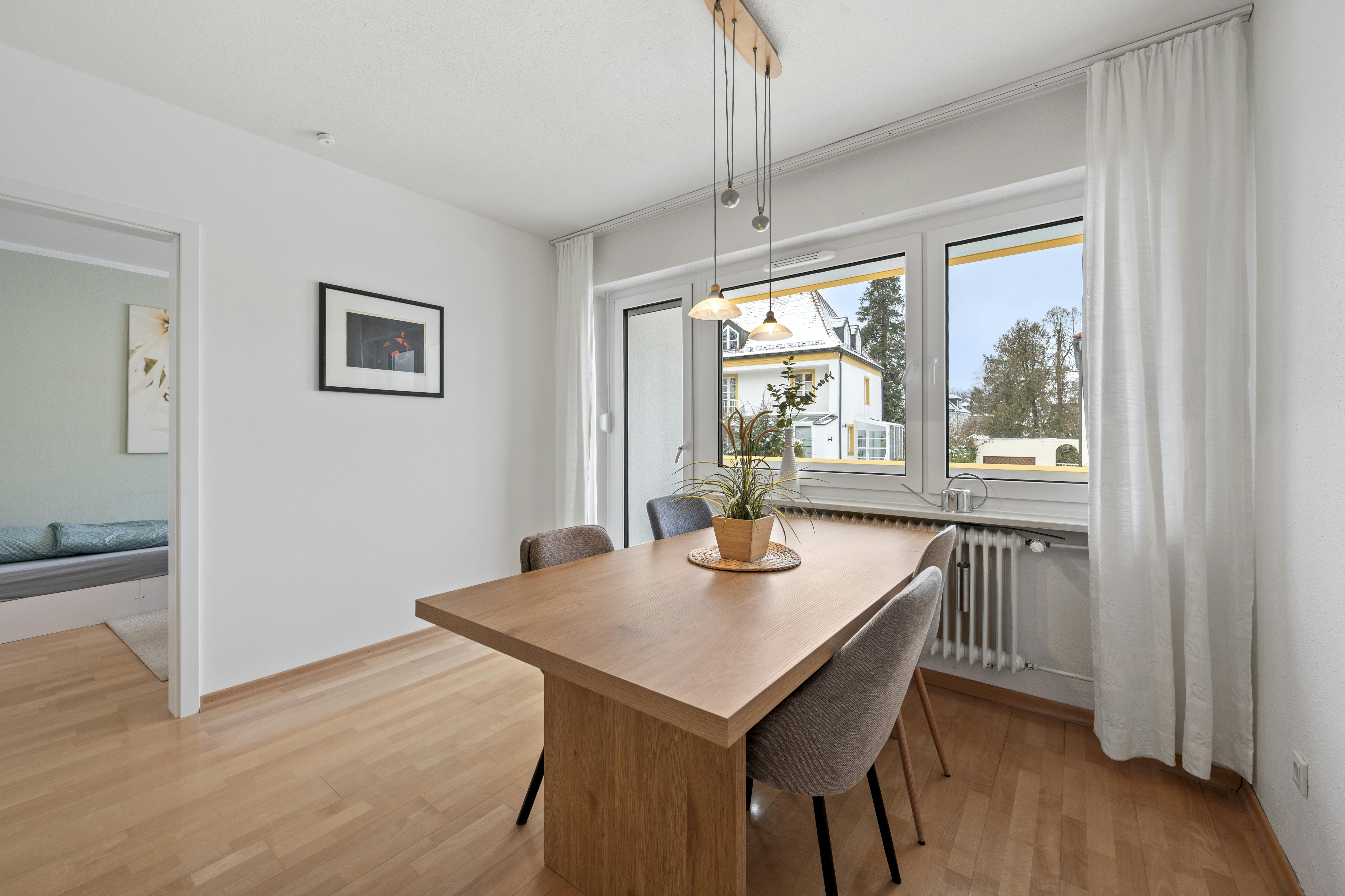 Zieh direkt ein in eine vollständig möblierte, helle und frisch renovierte Wohnung im südlichen Münchner Stadtbereich. Die großen Fenster lassen viel Tageslicht hinein und geben der Wohnung eine freundliche, offene Atmosphäre. Sie befindet sich in einer sehr gepflegten Wohnanlage, die kürzlich umfassend energetisch saniert wurde. Die Einheit liegt im ersten Obergeschoss und ist damit bequem erreichbar. Die Raumaufteilung ist ideal gestaltet: Drei separat abschließbare Schlafzimmer, ein Esszimmer mit Balkon, eine funktionale Küche sowie ein kompaktes Badezimmer bilden das Herz der Wohnung. Der großzügige Flur bietet zusätzlich eine praktische Abstellkammer. Im Keller steht ein trockener, abschließbarer Raum mit stabiler Stahltür zur Verfügung....