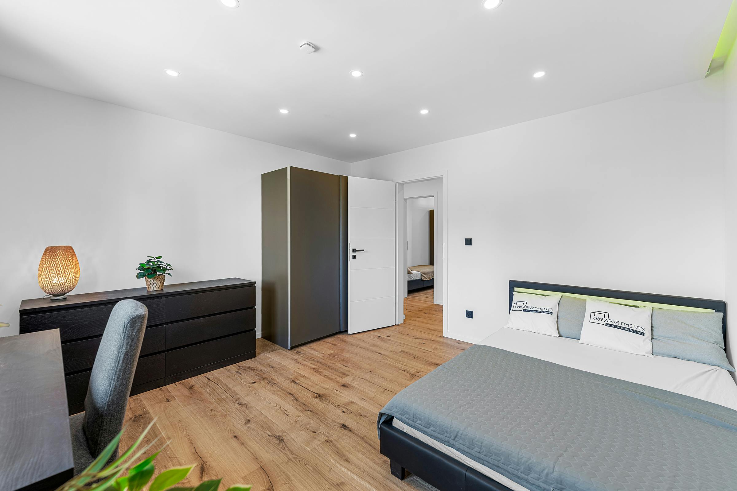 The newly renovated 91 sqm apartment in Munich offers a high-quality living experience and includes a beautifully designed and fully furnished room. You can take a first look at how the finished apartment will appear here: https://my.matterport.com/show/?m=3bxUmJsws4n Your room is thoughtfully and stylishly furnished with: • Private balcony with lounge furniture and power outlet • An LED upholstered bed, 90 cm wide (including mattress) • A large wardrobe with sliding doors and integrated clothes hooks • A desk with drawers, a comfortable armchair, and a waste bin • Suspended ceilings with individually controllable LED shadow gaps (color selectable) • A Munich wall art piece • An additional large mirror and shoe storage compartments in the hallway Please note:...