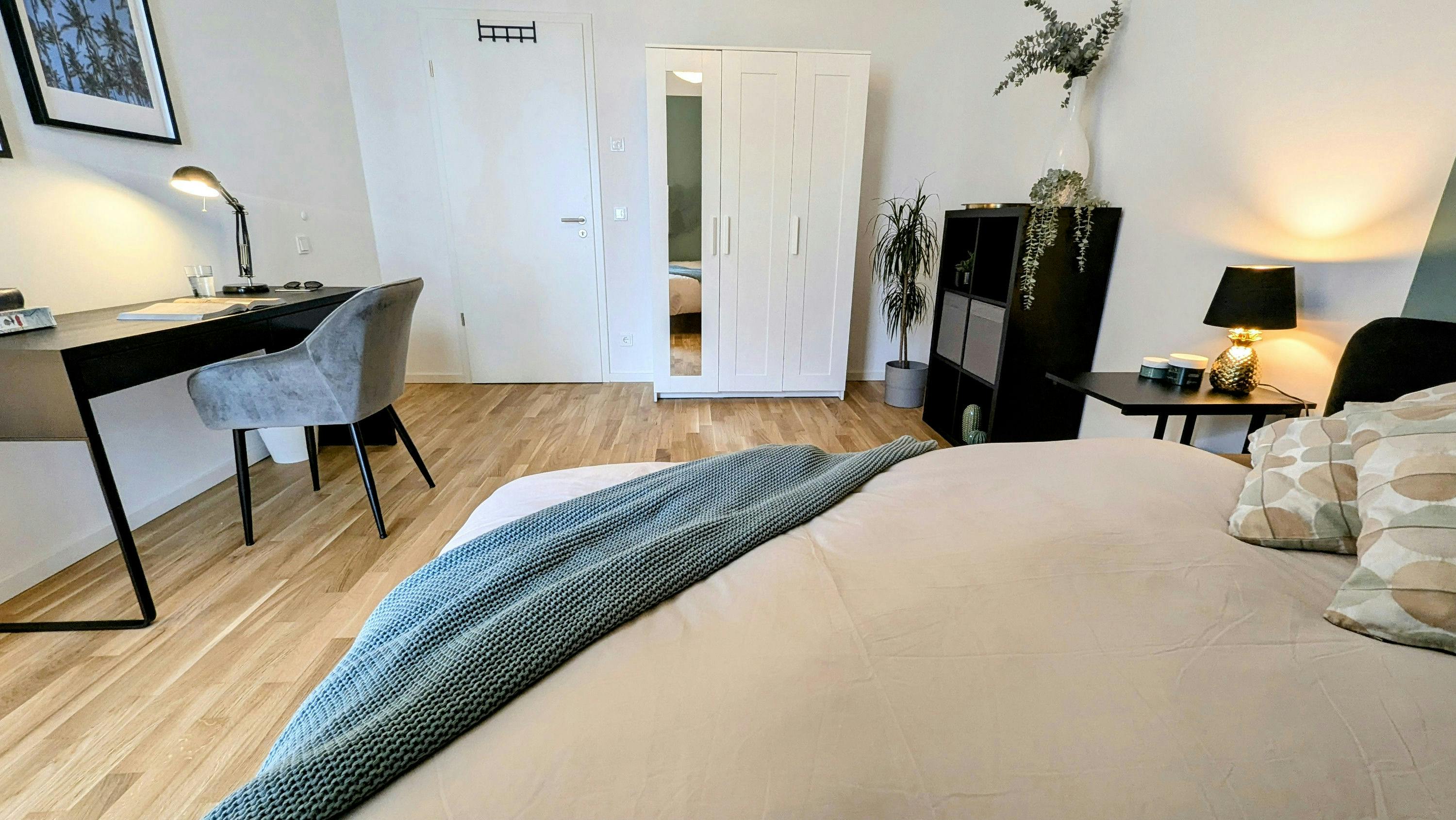 ✔️ Fully furnished and equipped – just bring your suitcase and personal items ✔️ Bedroom in a shared apartment - Equipped kitchen and comfortable bathroom. ✔️Perfect for students and working professionals Modern Bedroom in Munich This modern bedroom offers a comfortable and cozy space. Enjoy the convenience of a fully furnished and equipped home, including a bed, wardrobe and a fully fitted kitchen featuring a hob, oven, fridge, microwave, and essential utensils. Relax with internet access, making this apartment perfect for mid-term stays. ? About the Area Am Oberwiesenfeld, located in Munich’s Moosach / Milbertshofen-Am Hart area, is a residential address offering excellent access to...