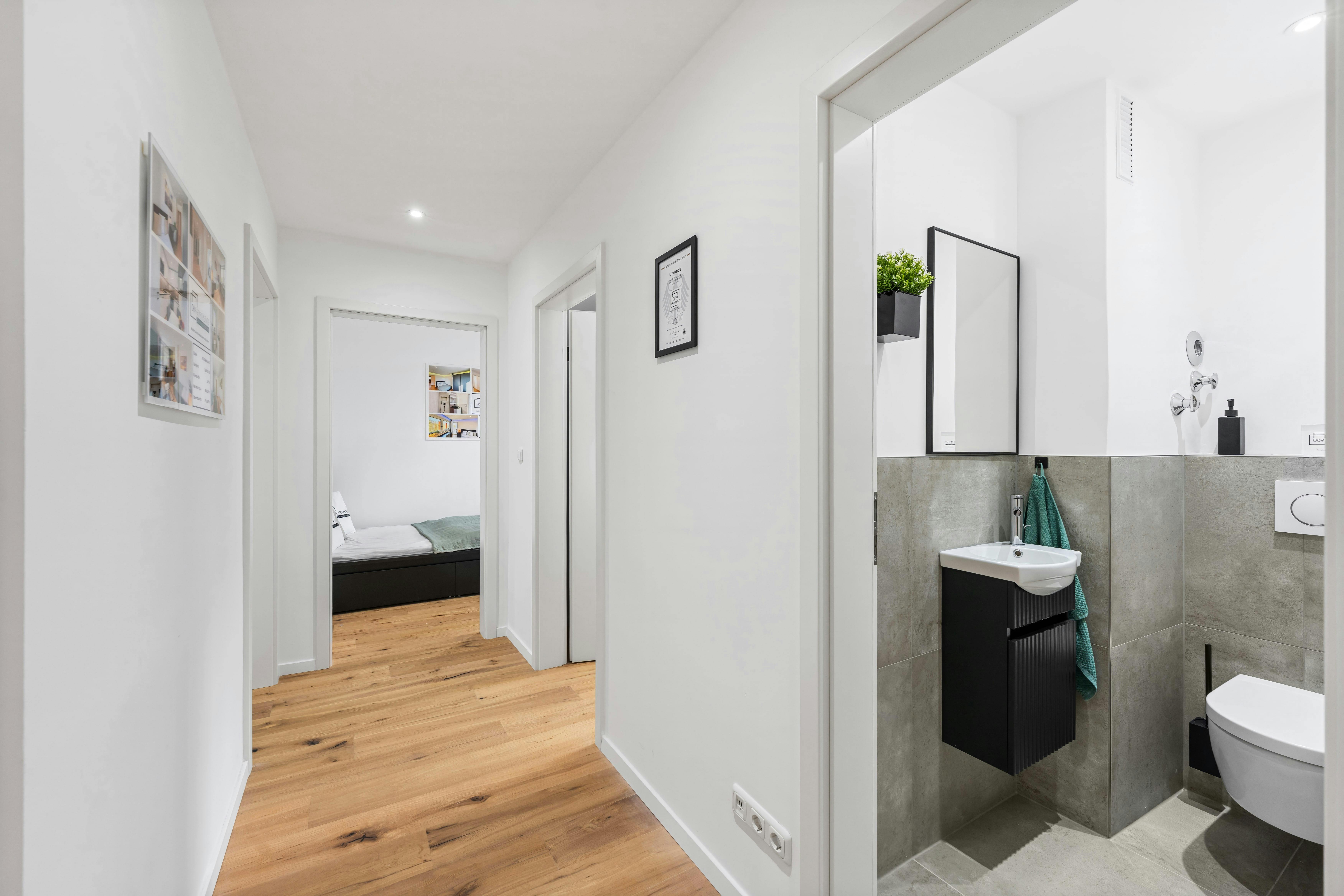 The newly and high-quality equipped Room 2 with a balcony is part of an 82 sqm newly renovated apartment in Munich, Berg am Laim. Ostbahnhof is a 10-minute walk away, and Leuchtenbergring is only 5 minutes on foot The generous hallway gives a very inviting impression and provides access to all rooms of the large apartment. The apartment also has a newly furnished bathroom, with a washbasin and LED mirror, a towel radiator and a shower as well as a toilet. Get a closer look how the apartment will look: https://my.matterport.com/show/?m=fjh7PAAYzPy The comfortably furnished room has the following brand new furniture: - 140cm Bed -...