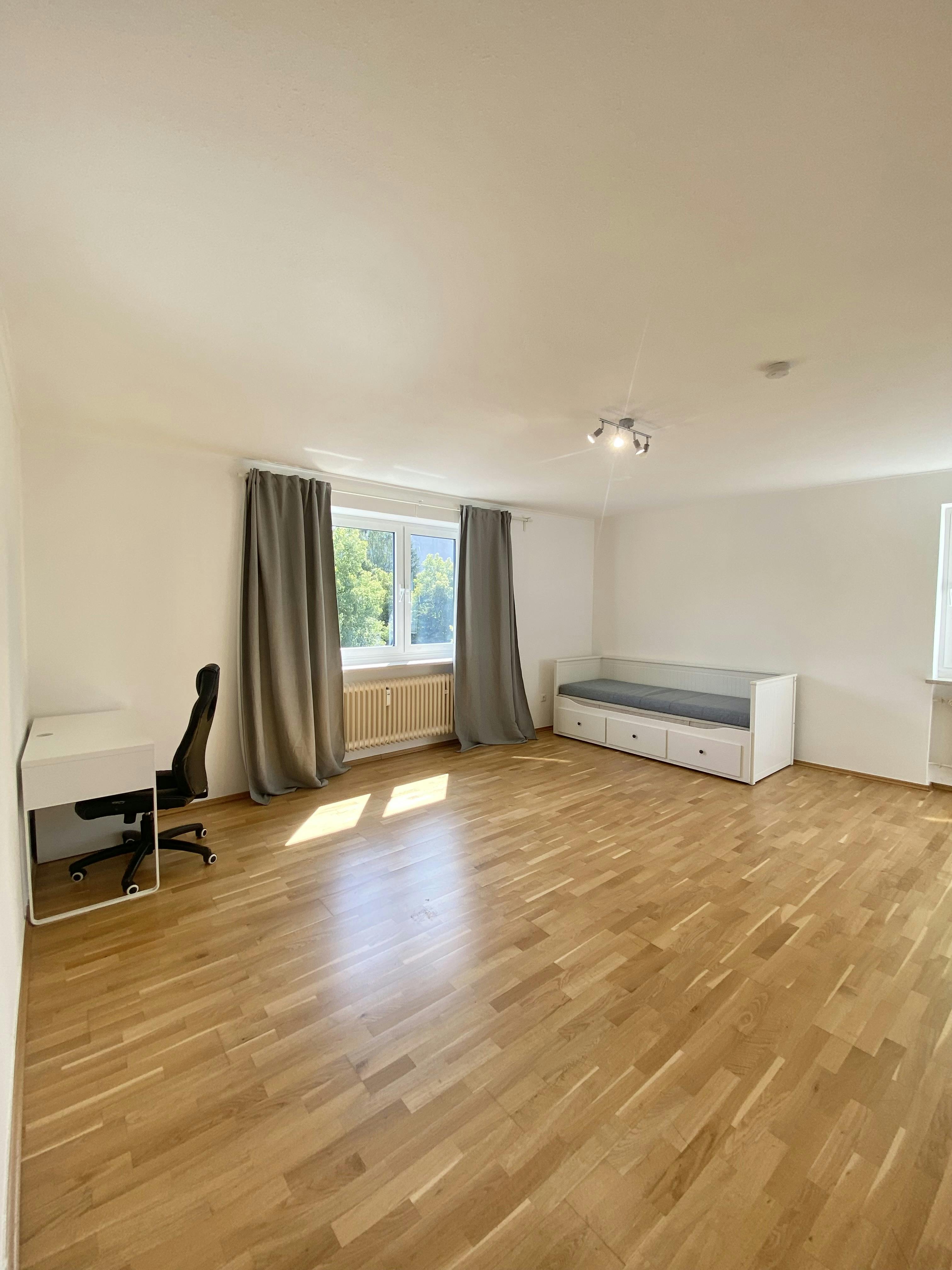Welcome to your new home in Munich! This bright and comfortable room is part of a spacious 80 m2 apartment that has everything you need for a pleasant and easy stay. The apartment includes three bedrooms, a bathroom with bathtub and shower, one separate toilet, a modern open-plan kitchen with dining area and a hallway. ⸻ ?️ Your Room Your room is cozy and full of natural light thanks to its large window and beautiful parquet flooring. It comes fully furnished, featuring: • Comfortable double bed (IKEA Hemnes, pull-out, 160x200 cm) • Wardrobe and additional closet • Desk, chair, and table lamp — perfect for studying or working from home ...