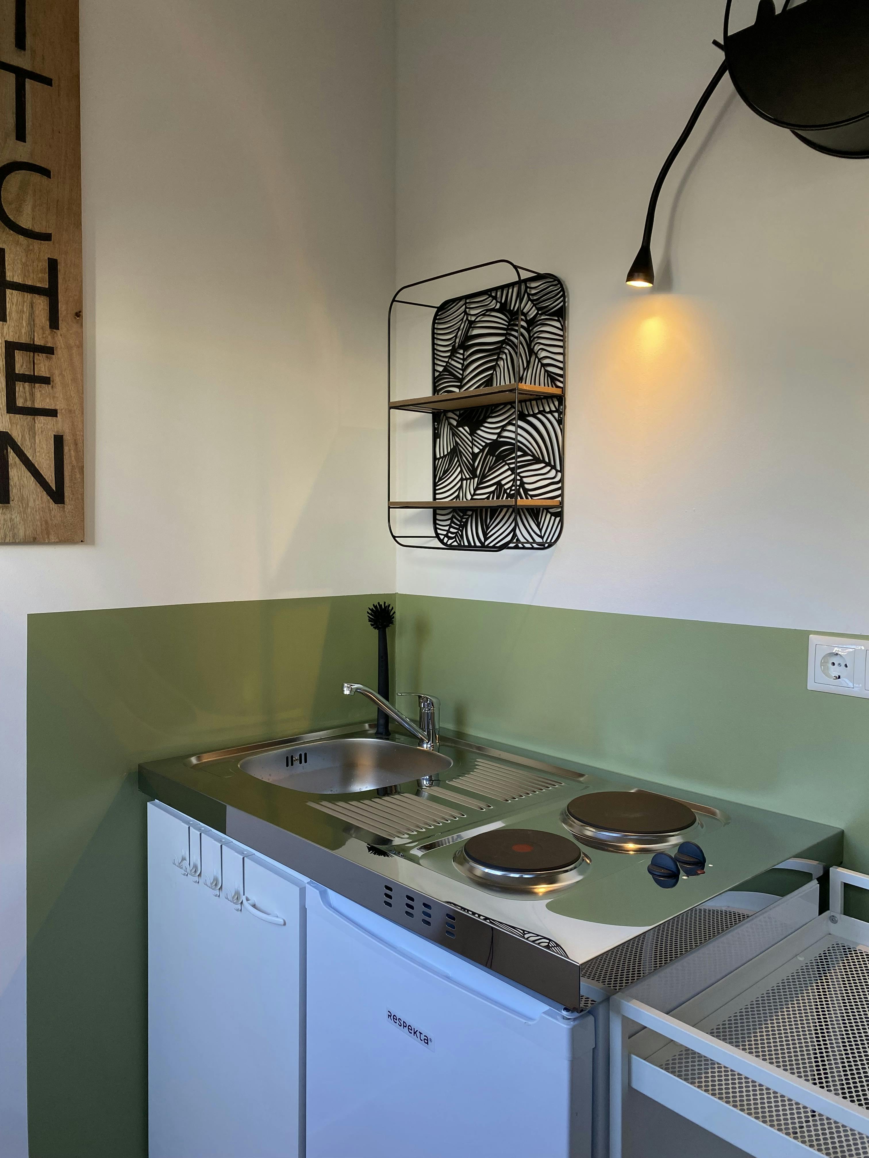 - Super central! - 13 min by bicycle to the LMU and 17 min to TUM. 20 min by public transport. - Public transport (bus and tram) within 2-5 min walk. - Bright and quiet apartment on the ground floor, with a mini-kitchen (stove and fridge with freezer compartment) and a bathroom. - Newly renovated and furnished. - Washing machine (free of charge) and storage shelves in the basement. At this location, we are specifically looking for a female tenant.