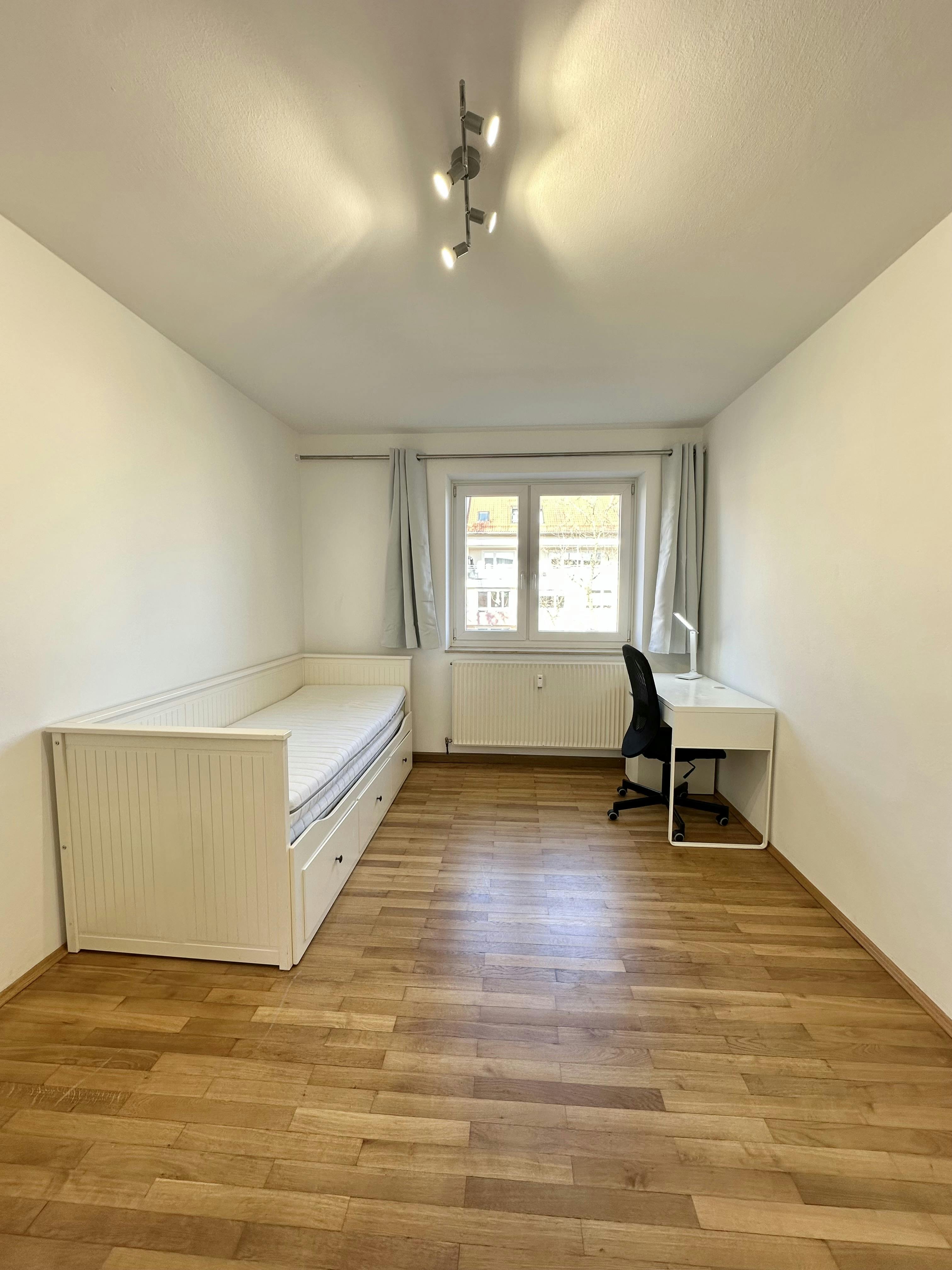Welcome to your new home away from home! We’re offering a stylish, fully furnished private room in a freshly renovated apartment, shared with two friendly young professionals – perfect for expats, interns, and working professionals. ⸻ ? Your Room: • Bright and cozy with two large windows and a private balcony • Beautiful wooden flooring • Fully furnished with: • IKEA Hemnes double bed (160x200 cm) • Wardrobe • Desk with ergonomic office chair and table lamp ⸻ ? The Apartment: • 3 private bedrooms, modern bathroom, separate toilet, spacious hallway • Fully equipped kitchen with: • Fridge, dishwasher, microwave • Pots, pans, dishes – everything you need! • Washing machine and dryer • Recently renovated – clean, modern and well maintained • No cleaning schedules – a professional cleaner comes...