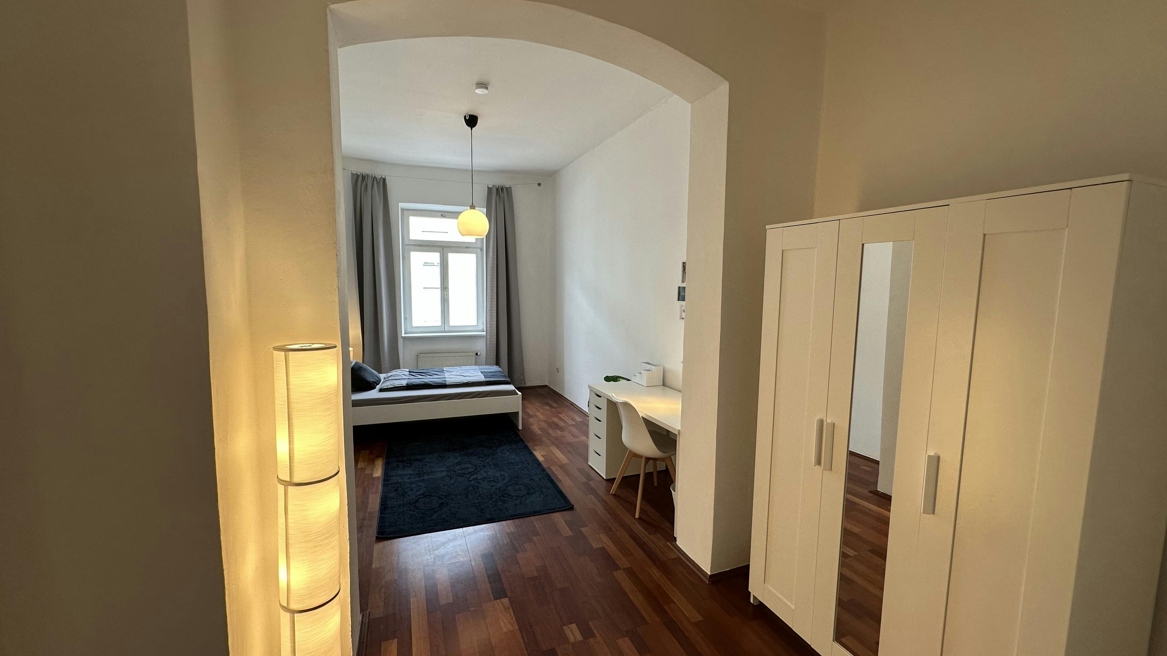 Und das wichtigste: ein Bequemes Bett zum entspannen. The inviting, bright shared room has been freshly renovated, lovingly decorated, and furnished, so you will immediately feel at home :-). The room has everything a student needs. Among other things, there is a spacious closet with plenty of storage space.