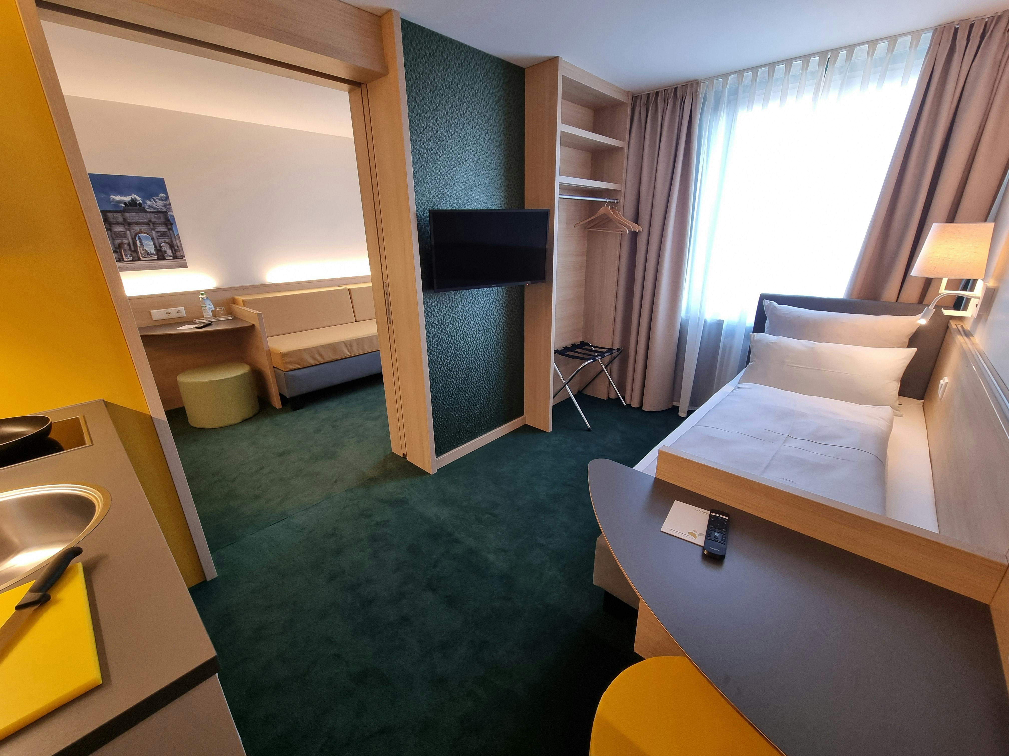 Please note: This rate applies to double use. If you would like to stay alone, please let us know. ✔️ Fully furnished Two room Superior apartment in the heart of Munich – right at Sendlinger Tor ✔️ Spacious 34 m2 unit with private kitchenette & two bathrooms and two rooms with connecting door ✔️ Flexible stays for business travelers, students & project assignments ✔️ Free high-speed WiFi in all apartments & common areas ✔️ Prime location: walking distance to universities, research centers & several hospitals ?️ The Apartments This Superior Double-Use business apartment offers approx. 34 m2 of thoughtfully designed living space, fully furnished, airconditioned and...