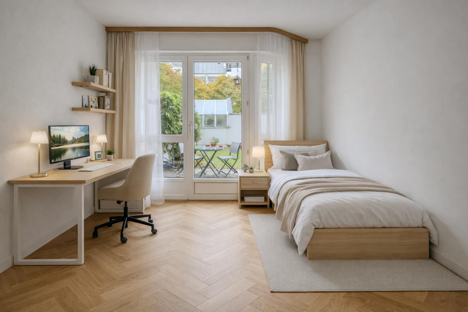 3 möblierte Zimmer sind ab sofort in einer Gartenwohnung verfügbar, Erstbezug nach Renovierung. Die Wohnung wird als 3er-WG vermietet. Sie liegt 2 Minuten von der Straßenbahnhaltestelle Cosimastraße sowie von zwei Supermärkten entfernt. 3 furnished rooms available immediately in a garden Home, first occupancy after renovation, and it is being rented out as a 3-person shared flat (WG). 2 minutes away from the tram stop Cosima Street and from two Supermarket.