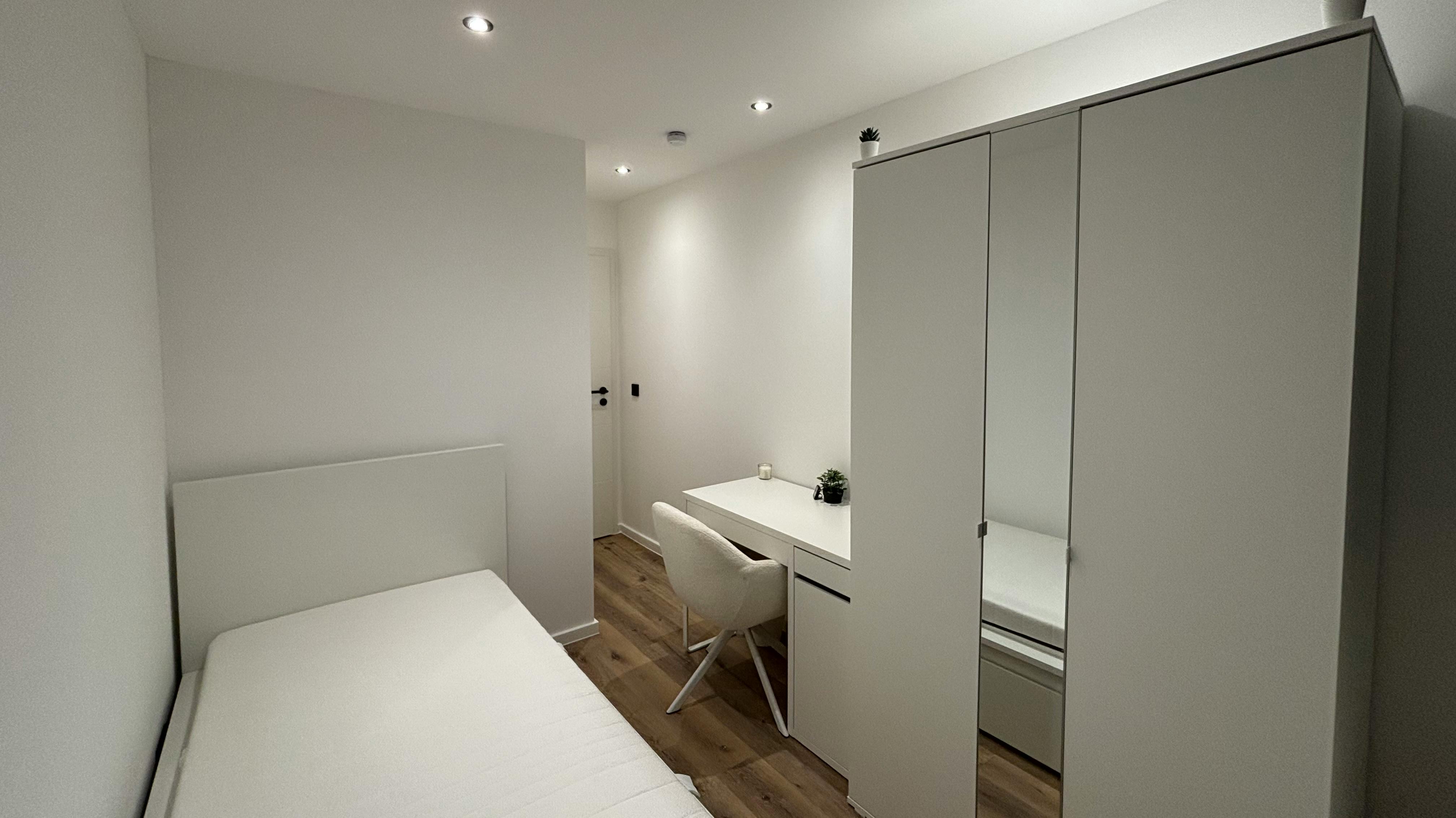 Wir bieten dir ein Zimmer in einer stylisch und hochwertig eingerichteten Wohnung, die komplett renoviert und von uns mit viel Liebe zum Detail ausgestattet wurde. Es handelt sich um Zimmer Nummer 1 der Wohnung, die Aufteilung der Wohnung ist dem beigefügten Grundriss zu entnehmen. Die attraktive und helle Wohnung befindet sich im 2.OG eines gepflegten Mehrfamilienhauses in perfekter und zentraler Lage. In nur 5 Gehminuten erreichst du die nahegelegenen öffentlichen Verkehrsmittel, von denen aus du jeden Ort dieser wunderbaren Stadt schnell und bequem erreichst. Jedes Zimmer ist vollständig möbliert und ausgestattet mit Bett, Kleiderschrank, Schreibtisch und Stuhl. Die Badezimmer verfügen über moderne Walk-In-Duschen. Insgesamt...